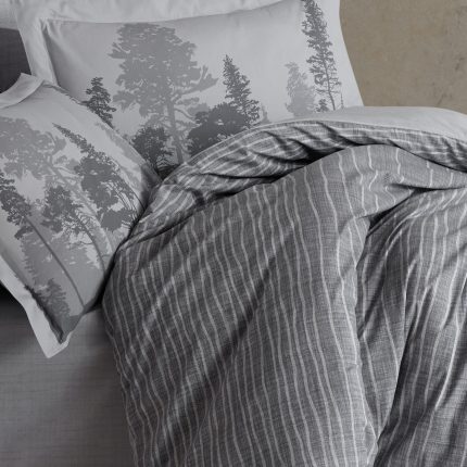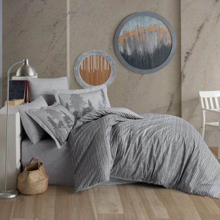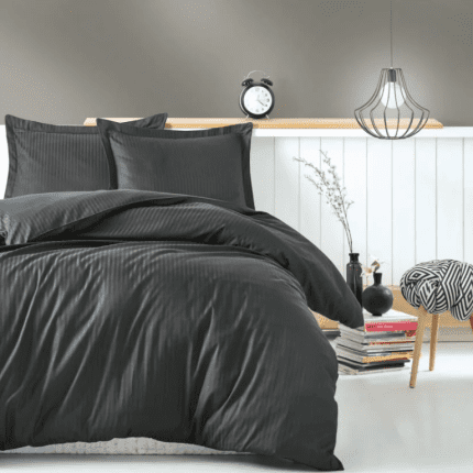 Памук сатен „Elegant Anthracite Stripes“ – 4 части – за спалня