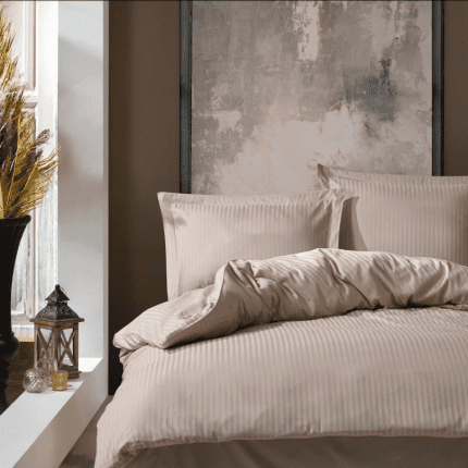 Памук сатен “Beige Elegance” Satin Stripe – 4 части – за спалня