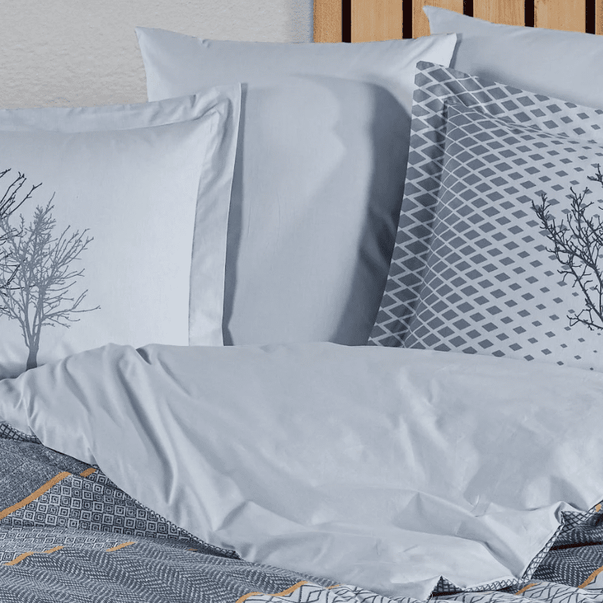 Калъфките са с красив акцент – силуети на дървета върху светъл фон, което носи усещане за уют, спокойствие и естествена хармония.