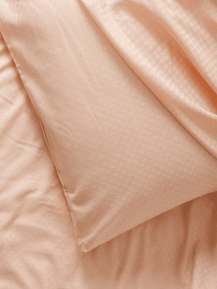 „Soft Peach“ носи нежност и топлина във вашия дом с деликатния си прасковен цвят и фин жакардов релеф. Дизайнът е едноцветен, но с лека тъканна структура, която придава изтънчен и елегантен вид. Идеален избор за спални в пастелни, модерни или класически тонове, където се търси усещане за уют и чистота.