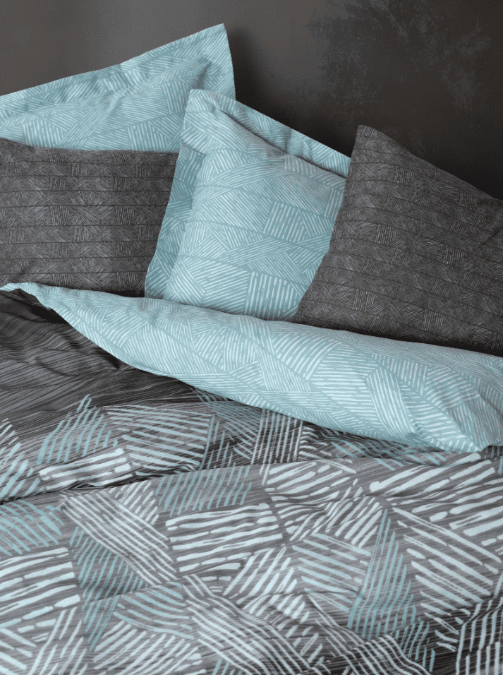 „Arel“ впечатлява с модерен графичен дизайн в съчетание от тъмно графитено сиво и нежно синьо. Уникалният геометричен мотив придава дълбочина и движение на визията, а контрастът между цветовете създава усещане за спокойствие и стилен баланс.