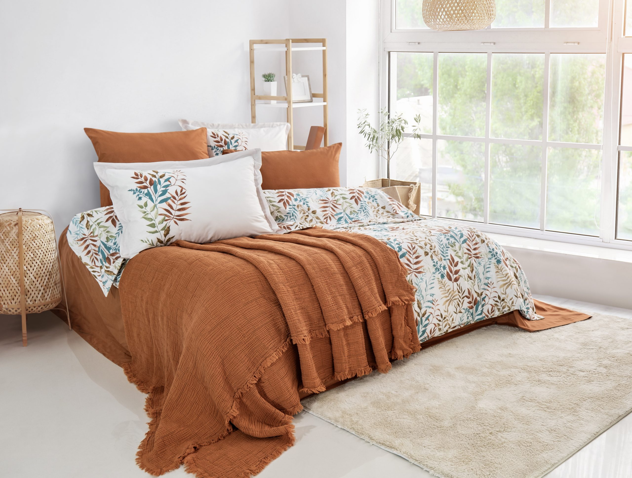 Покривало от Муселин (100% памук) – меко, леко и с натурална текстура, която добавя дълбочина и уют на спалнята.