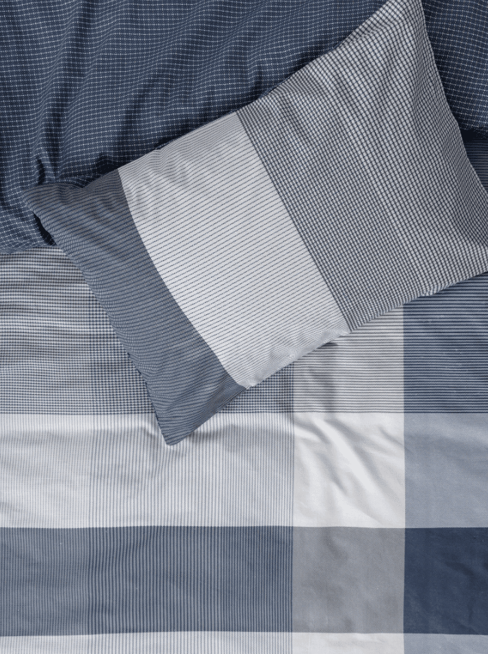 „Liva Blue“ съчетава естествен уют и модерен минимализъм. Десенът с широки карета в различни нюанси на синьото и сивото носи усещане за свежест, спокойствие и чистота. Идеален избор за хора, които предпочитат семпъл, но елегантен стил в интериора. ?