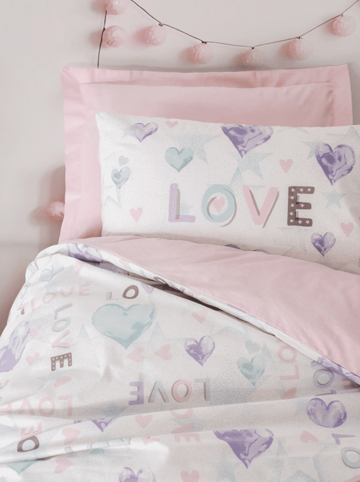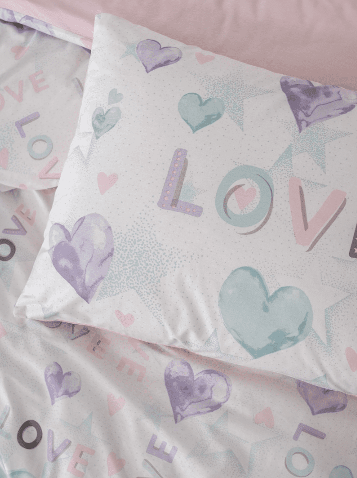 • Десен: сърца и надписи LOVE